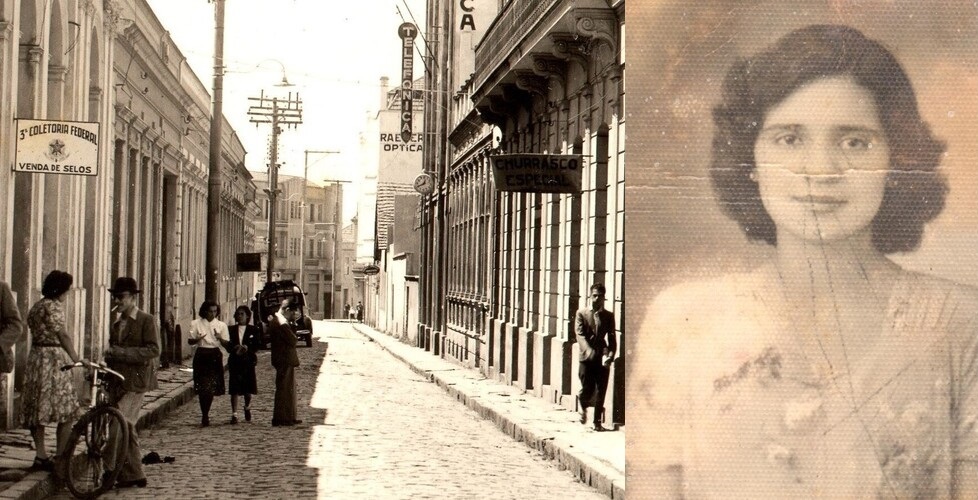 No final da década de 40 a jovem Lourdes começou a trabalhar como telefonista [foto(esq) com as colegas de trabalho] na Telefônica (antiga-Travessa Marumbi, hoje-Tobias de Macedo)…